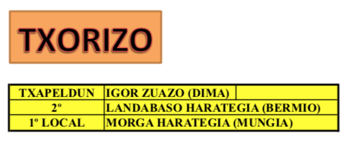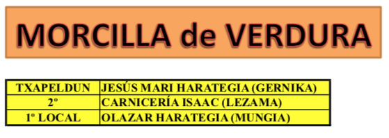 Los Jurados han ido seleccionando los productos hasta elegir los dos mejores productos en las tres categorías y han añadido un Premio Local en el Mejor Txorizo y la Mejor Morcilla de Verdura, tal y como os presentamos a continuación.