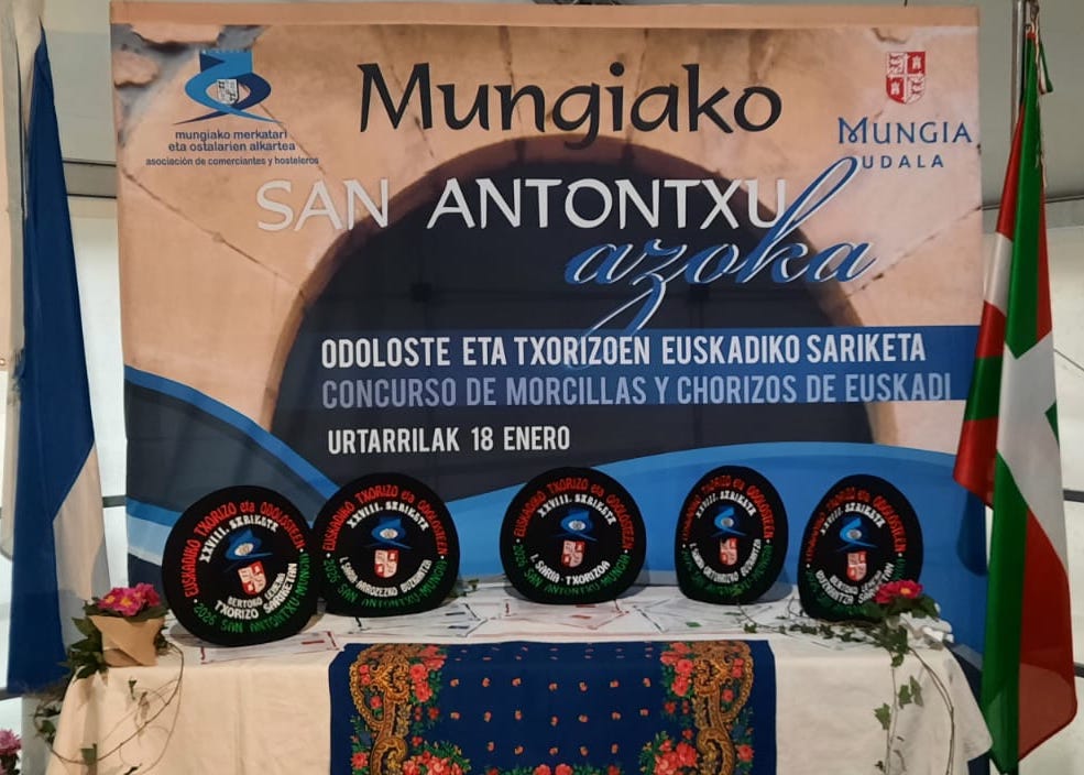 Este pasado domingo ha tenido lugar en Mungia la ya tradicional Azoka que con motivo de los San Antontxus y organizado por Mungiako Merkatari eta Ostalarien Alkartea, en colaboración con Mungia Udala, se ha procedido a elegir el mejor Txorizo de Euskadi y las mejores Morcillas de Verduras y Arroz del territorio. Ha sido un auténtico momento Slow Food en el que se ha tratado en todo momento con materia de kilómetro cero y de una calidad elevada.
