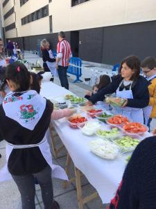 Mientras los mayores se dedicaban a mimar las alubias, tuvo lugar una Master Class para los más pequeños del barrio, donde los miembros de Makilaren Kofradia enseñaron a preparar unas exquisitas ensaladas que, posteriormente las degustaron en sus casas.