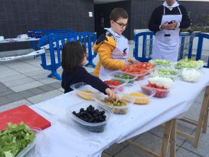 Los productos utilizados para la confección de las ensaladas fueron gentileza de MercaBilbao, al cual agradecemos muy sinceramente su buena disposición para hacer llegar nuestros productos de la huerta al público infantil que serán los participantes del mañana.