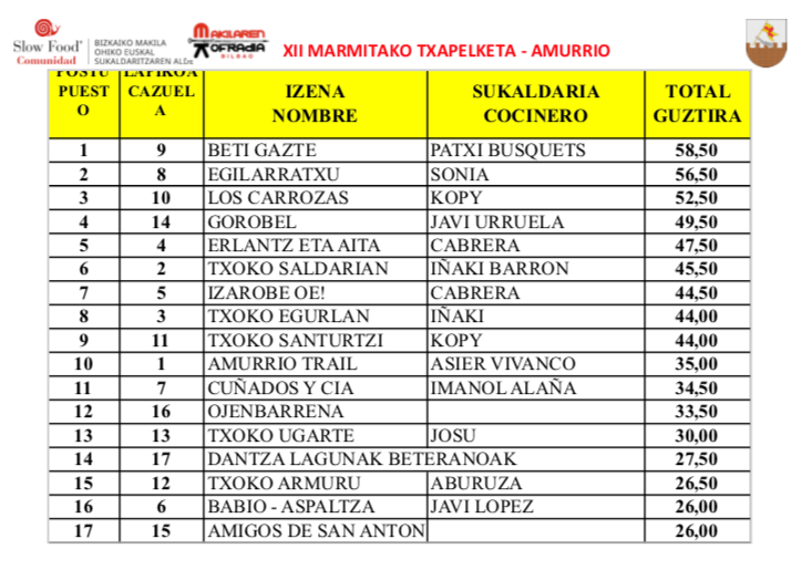 Este fin de semana ha tenido lugar en Amurrio la décimotercera edición del Concurso de Marmitako al que MAKILAREN KOFRADIA ha acudido como Jurado y que ha estado organizado conjuntamente con el Ayuntamiento por la Sociedad Gastronómica SU – GOZOTAN.